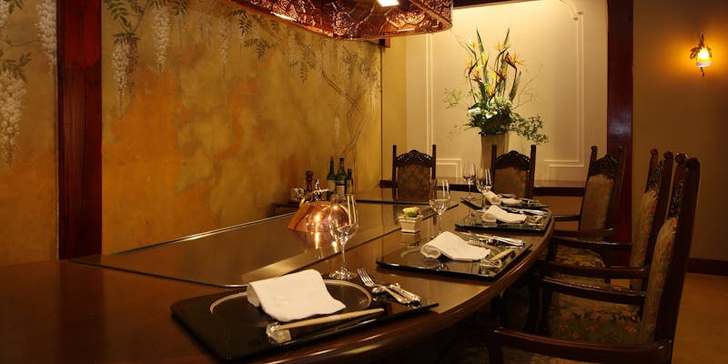 銀座・みゆき通り沿いにある「銀座うかい亭」。日本の伝統建築と西洋の美術品が美しく調和し他空間でいただく鉄板焼を中心としたコースとホスピタリティはとても好評です。
